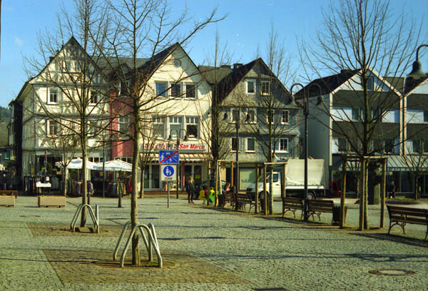 Der Marktplatz ist von schönen Fachwerkhäusern umrahmt. Donnerstags ist Wochenmarkt. Haiger